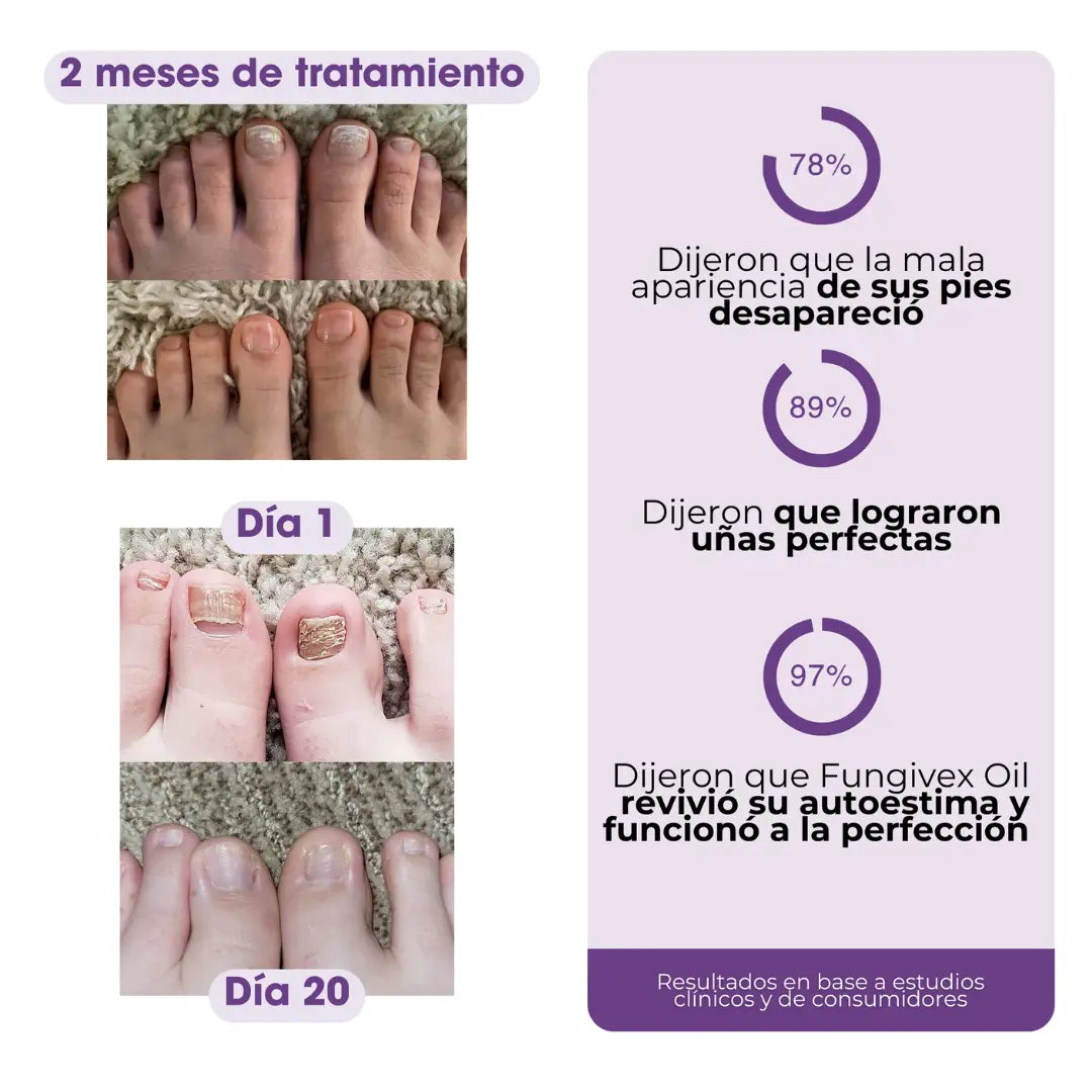 Fungivex Oil ha transformado la vida de quienes sufrían por hongos en las uñas y piel 👣. Con resultados visibles en tan solo 3 días, este poderoso aceite natural elimina el 99.9% de los hongos y deja tus pies saludables, suaves y libres de mal olor 💧🌿.