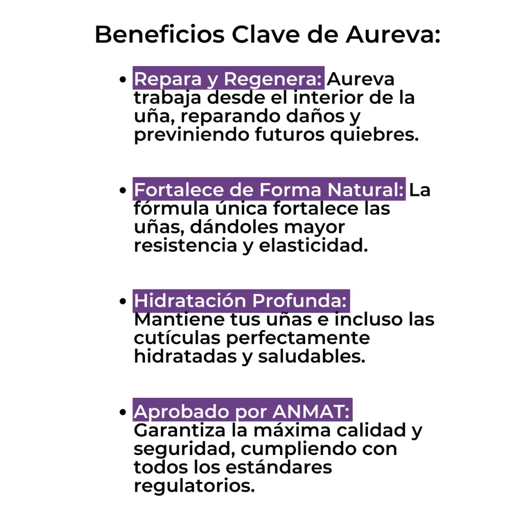 Aureva es un aceite innovador, aprobado por ANMAT, formulado para restaurar, fortalecer, embellecer y eliminar los hongos de las uñas en manos y pies.