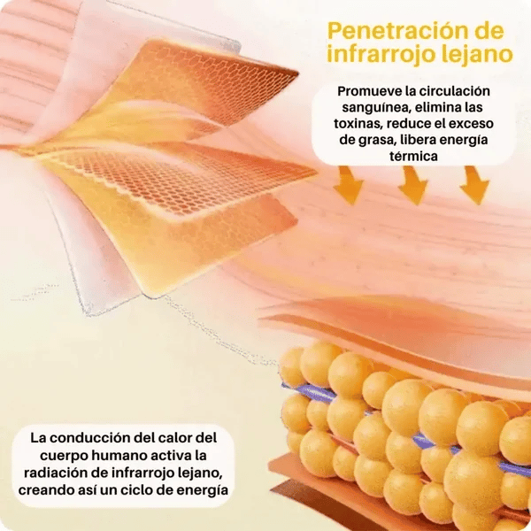 Está hecha fibras de nanopartículas magnéticas con incrustaciones de turmalina, que atrapan el calor corporal y te mantienen caliente. Ayuda a eliminar los desechos dañinos de los órganos del cuerpo, alivia la fatiga física y el estrés mental y permite que el cuerpo se relaje por completo. La turmalina produce rayos infrarrojos lejanos que alivian el linfedema, reducen la inflamación, alivian el dolor y maximizan el proceso de desintoxicación.