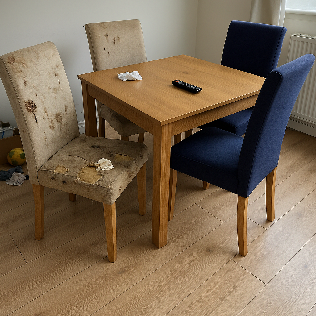 ✅Sillas manchadas que arruinan la imagen de tu comedor.
