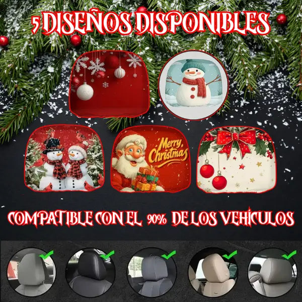 Transforma tu carro en un espacio lleno de espíritu navideño con los Reposacabezas Navideños.